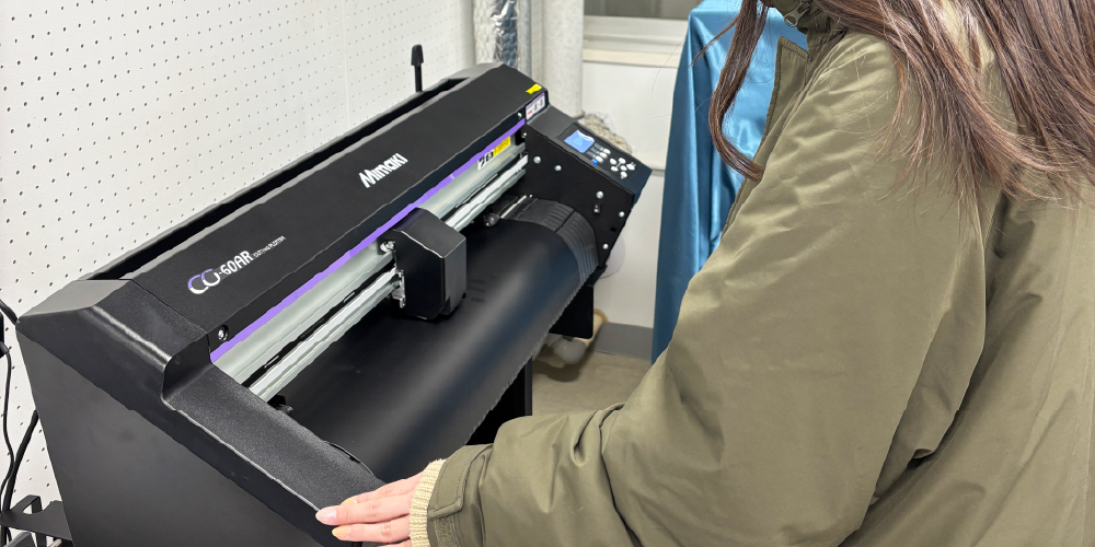 一方で、プリントだけでなく、展示空間を作ったりするうえで、仕上げや構成まで含め考えられるように、カッティングマシンも一緒に導入しよう、という流れになり、Mimakiの「CG-60AR」を導入しました。