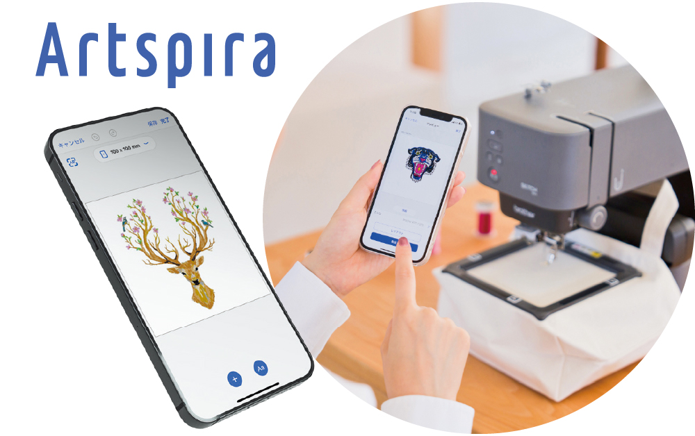 刺しゅうデータの選択から編集・転送まで、モバイルアプリ「Artspira(アートスピラ)」で対応可能です。