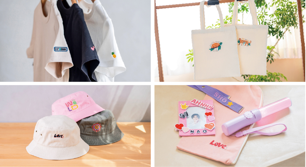 ご家庭でのハンドメイドから店舗ノベルティの作成、プリント専門店やタオル専門店での名入れサービスなど、刺しゅうが出来る事によってハンドメイドやビジネスの幅が大きく広がります。