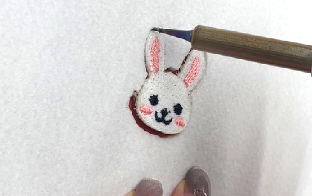 デザインしたワッペンに沿って芯材を溶かしていきます -