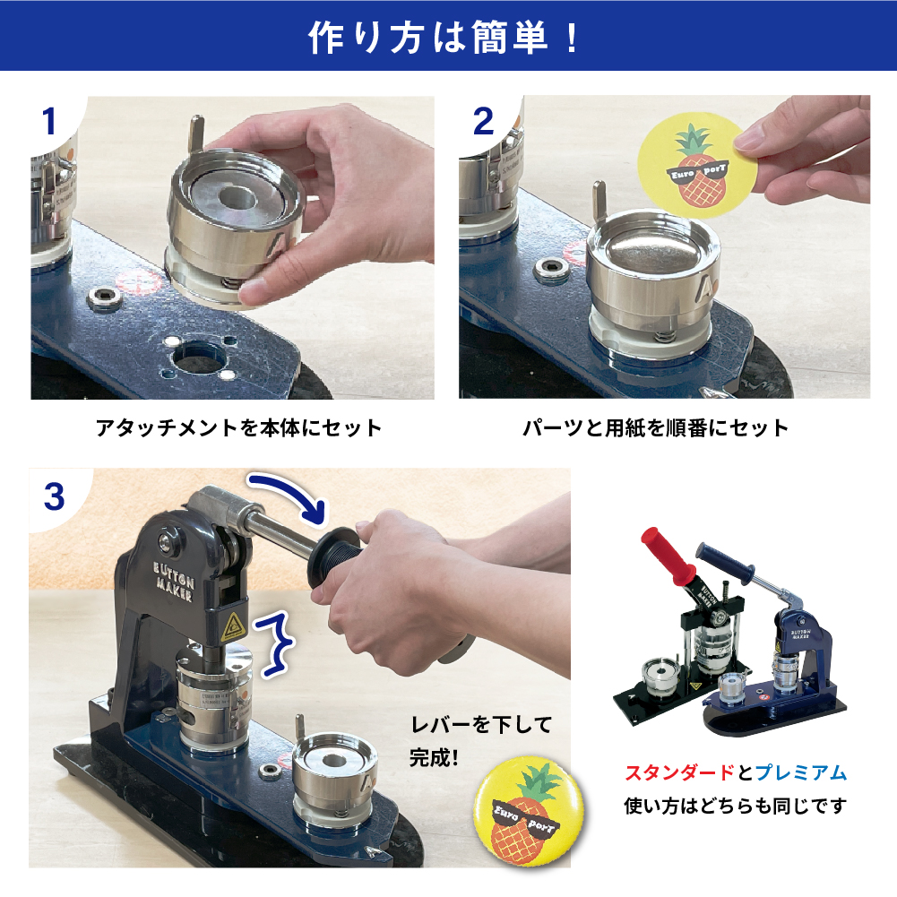 缶バッジマシンの使い方について、日本語の説明書付き
