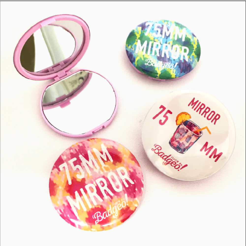 缶バッジマシンでオリジナルの丸型コンパクトミラーが作成できるパーツセットです。