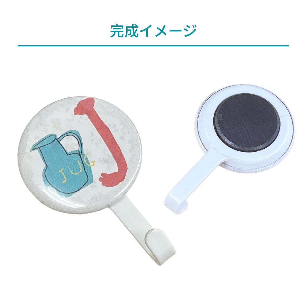 缶バッジマシンでオリジナルの丸型フックマグネットタイプが作成できるパーツセットです。