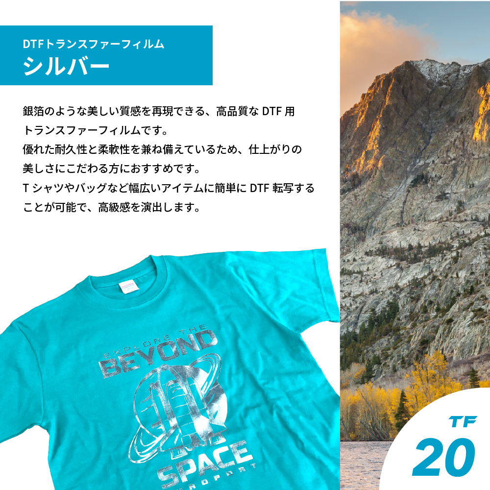 銀箔のような美しい質感を再現できる、高品質なDTF用トランスファーフィルムです。