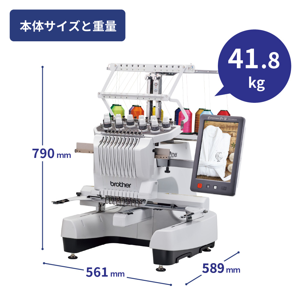 ブラザーの刺しゅうミシンPR1060Wは、10本針搭載で多色刺しゅうを効率的に仕上げられる業務用モデルです。