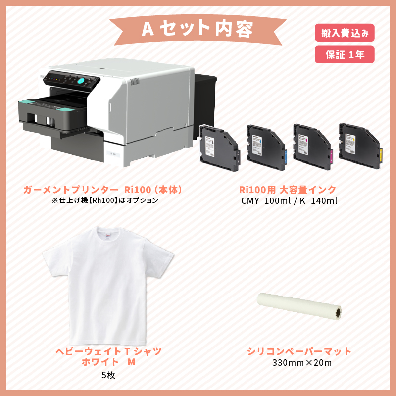 ガーメントプリンターRi100本体とインク、素材の付いたシンプルなセットです!
