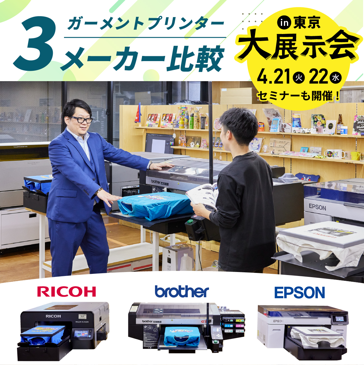 Tシャツやトートバッグなど、素材やサイズの違うアイテムをワンタッチで交換でき、幅広いビジネスニーズに対応します。