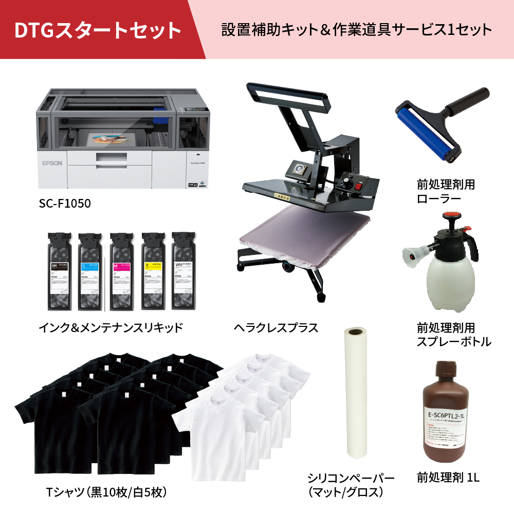 ガーメントプリンター「SC-F1050」とアイロンプレス機を組み合わせた、DTGプリントのスタートセットをご用意しました。