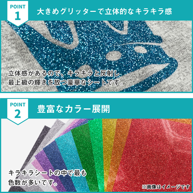 大粒のグリッターを高密度に散りばめ、光の角度によって輝きが変化する立体感のあるシートです。