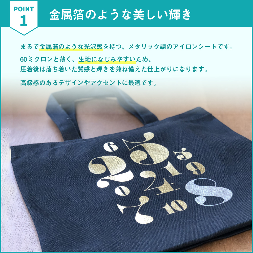 まるで金属箔のような光沢感を持つ、メタリック調のアイロンシートです。