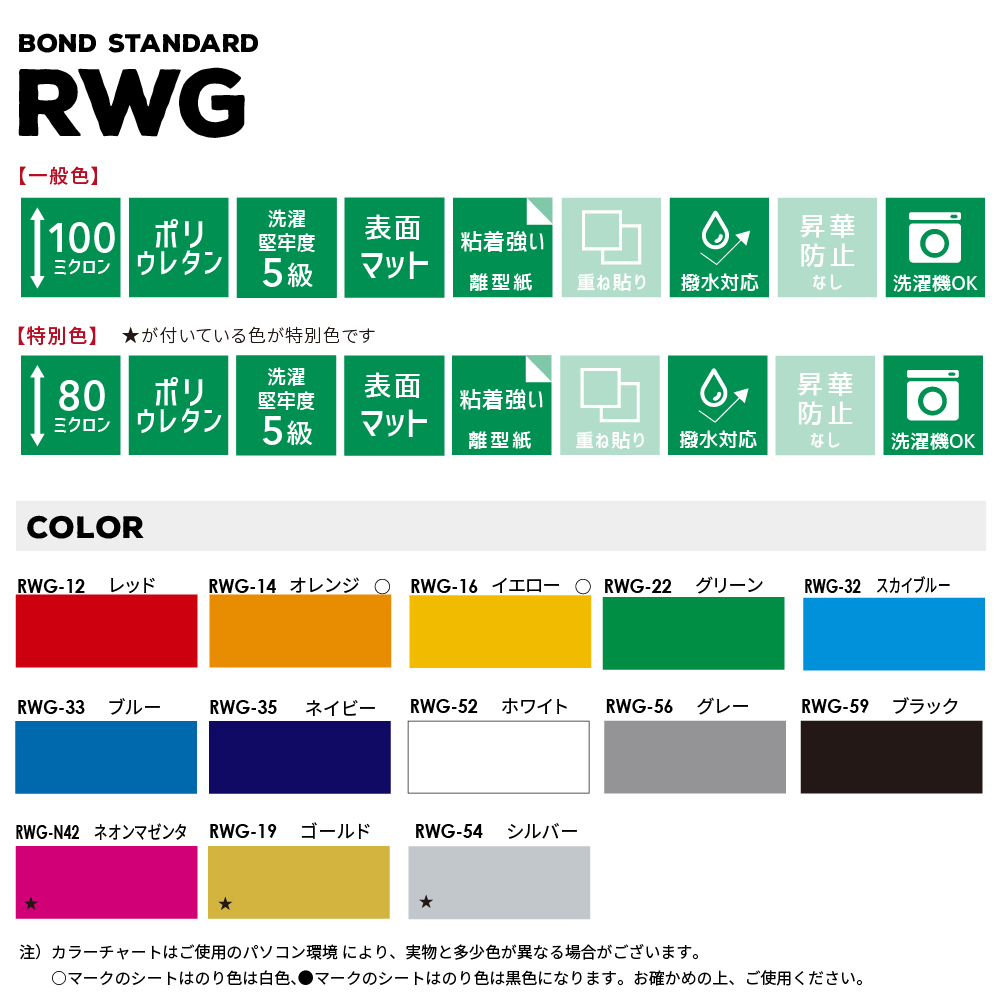 1:【RWG-N42】ネオンマゼンタ、【RWG-19】ゴールド、【RWG-54】シルバーが特別色です。