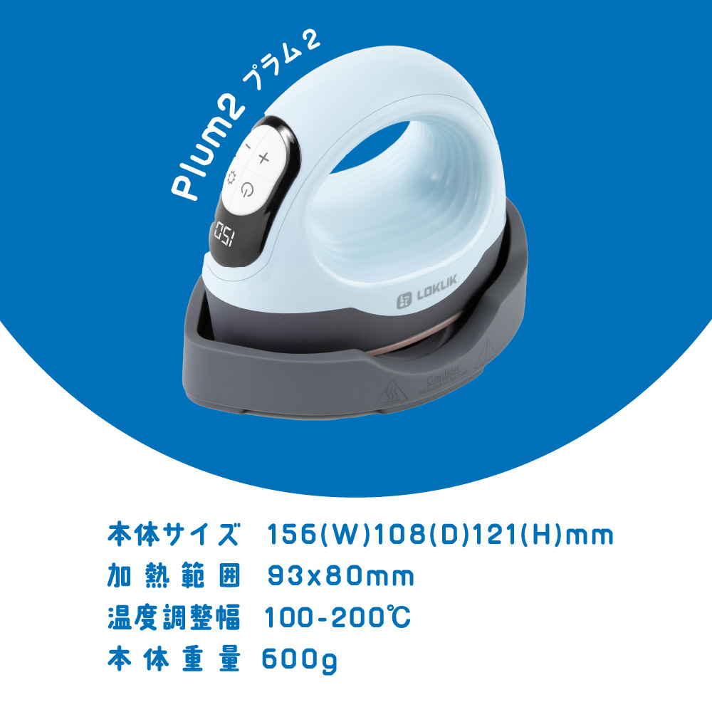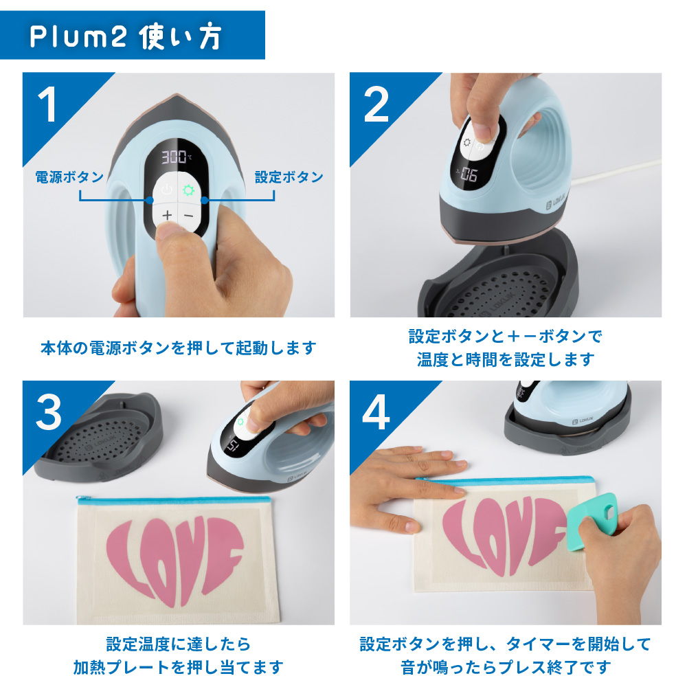シンプルプレスシリーズの「Plum2(プラム2)」はハンディサイズの小型のアイロンプレス機です。
