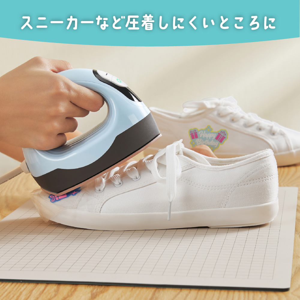さらに、背面のカーブした加熱プレートにより曲面への加飾も簡単に行えます。マグカップやタンブラー、キャップ、靴など、立体物の名入れやデコレーションに最適です。
