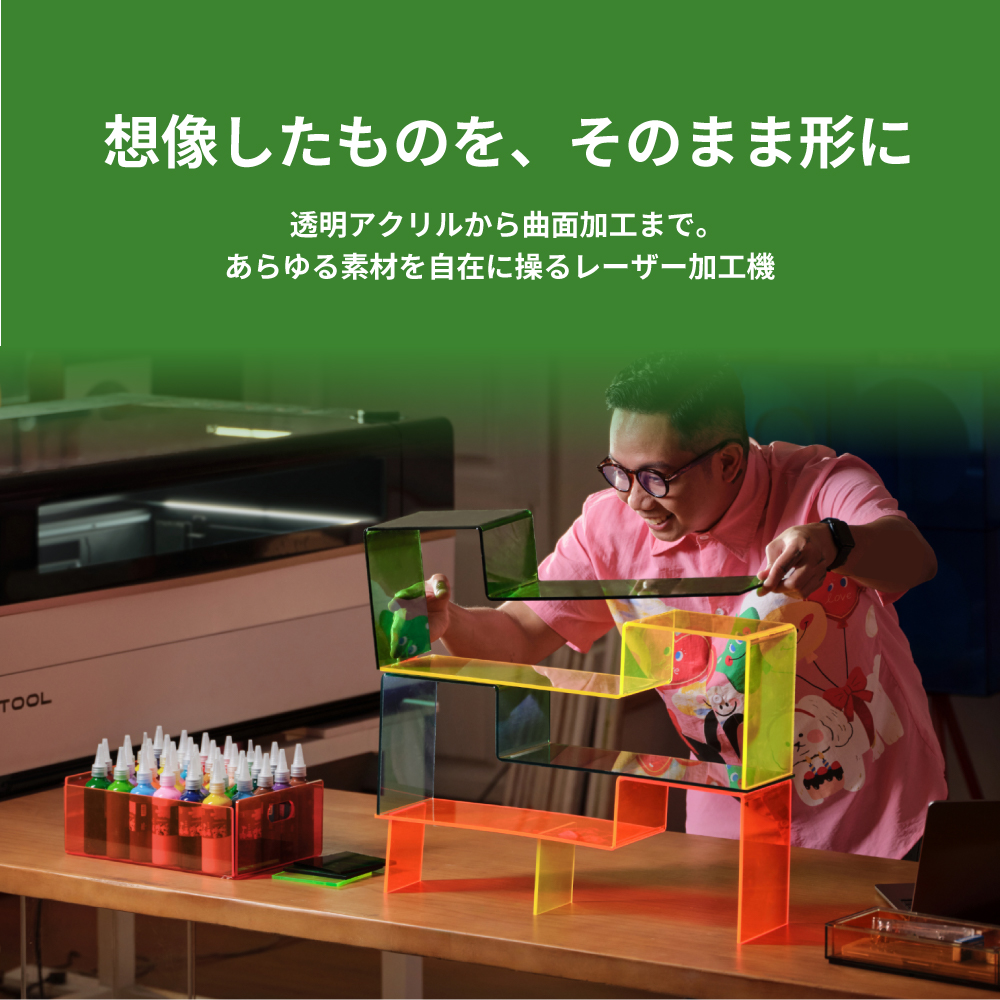 透明アクリルから曲面加工まで。あらゆる素材を自在に操る、究極のスマート・レーザーカッター。