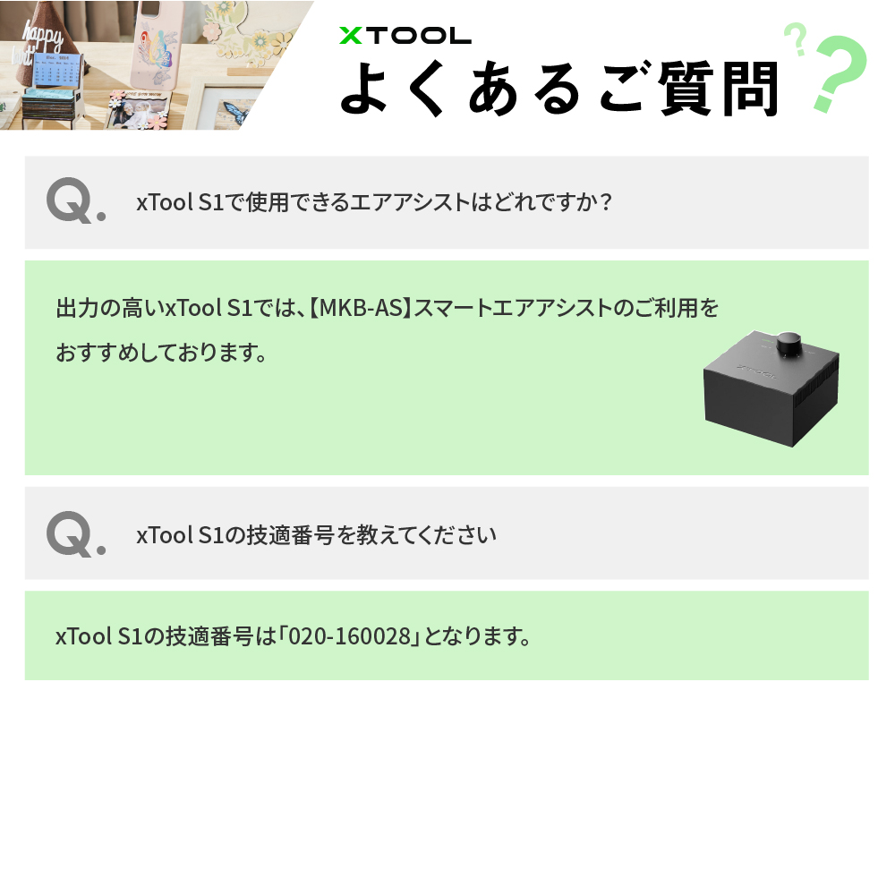 A.出力の高いxTool S1では、【MKB-AS】スマートエアアシストのご利用をおすすめしております。