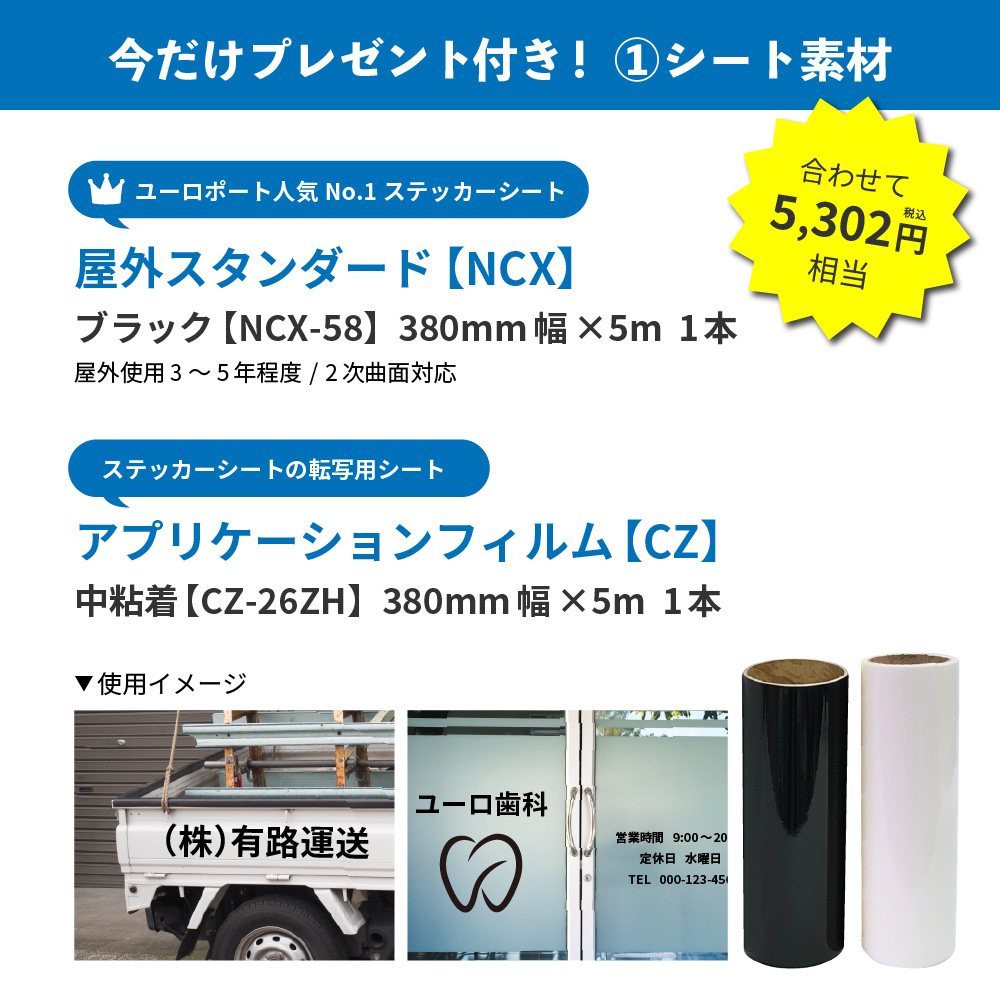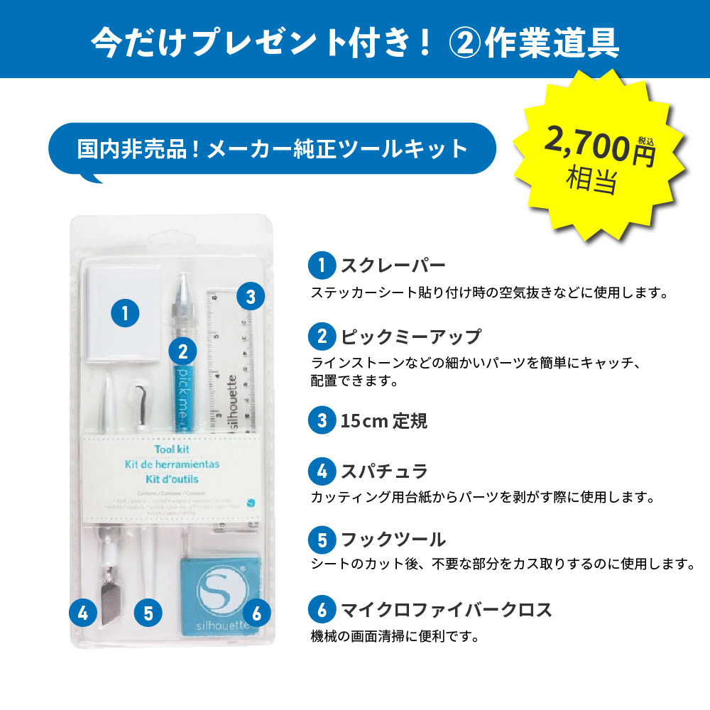期間中にカッティングマシン「カメオ4PLUS」をご購入いただいた方へ、ステッカーの作成に必要な道具&素材を無料でプレゼント中です。