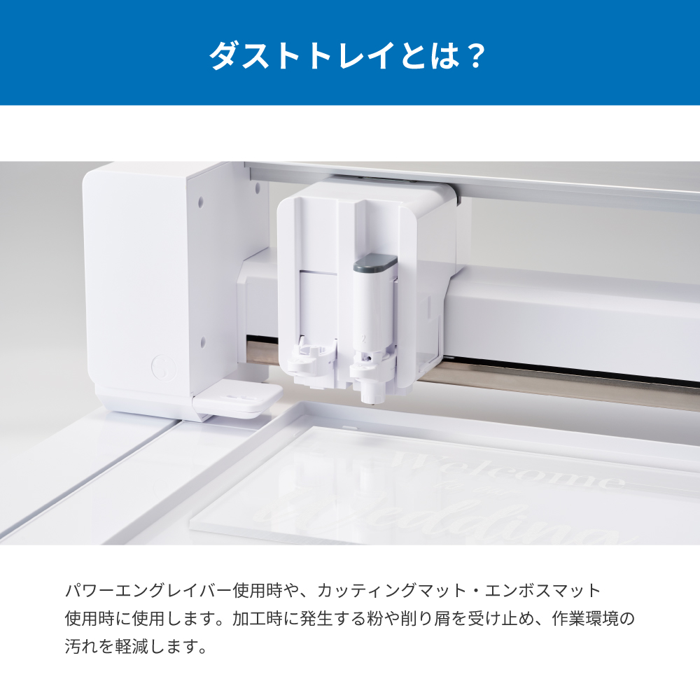 パワーエングレイバーを使用するときや、カッティングマットやエンボスマットを使用する際に使用します。 加工時に発生する材料の粉や削り屑を受け止める役割を果たします。