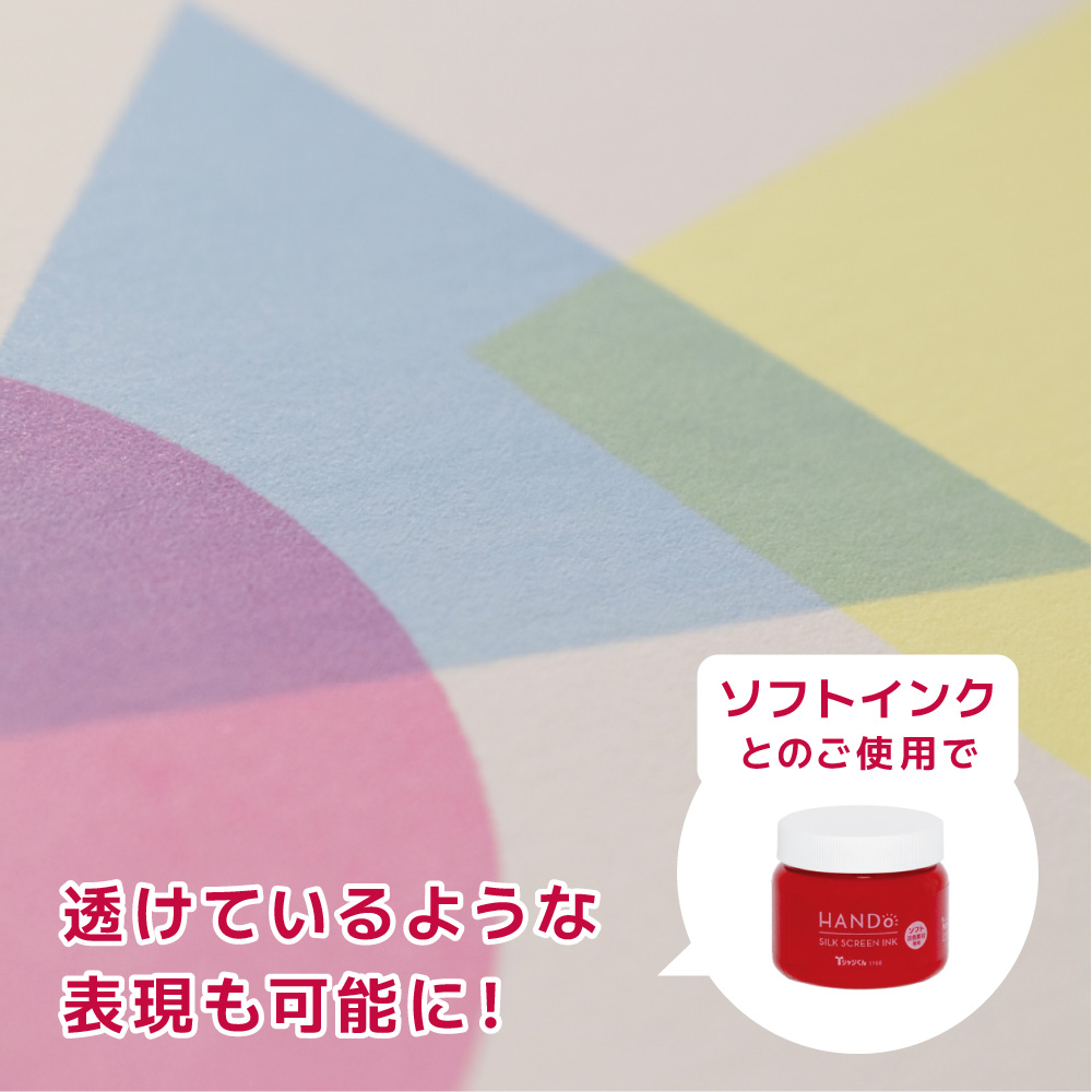 シルクスクリーンインク ソフトに混ぜると透明感のある色を作ることができます。 それ以外のインク(プレーン、ソフト、ウレタン、撥水、発泡、蓄光、油性インク)には使用できません。