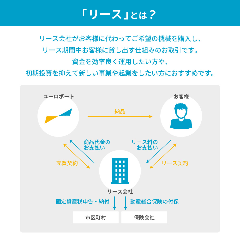 ユーロポートでは、お客様にあった機種選定から導入後のアフターサポートまで一貫してサポートいたします。