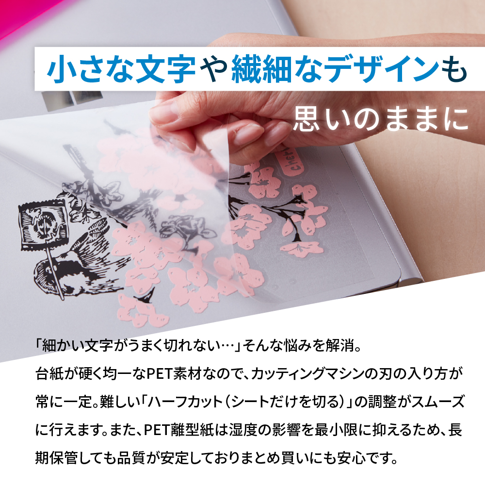 台紙が硬く均一なPET素材なので、カッティングマシンの刃の入り方が常に一定。