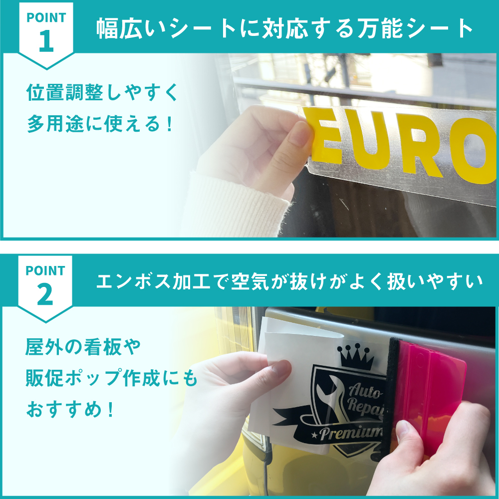 一般的なカッティングシートに対応する、汎用性の高いアプリケーションフィルムです。