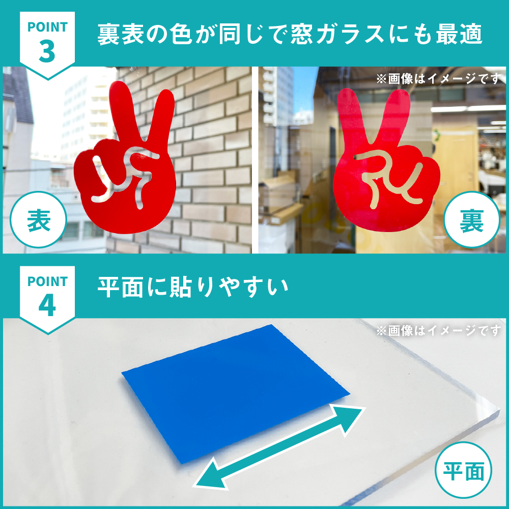 表裏の色やシートの隠蔽性にご注意ください。(両面同色でないものがあります)
