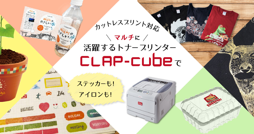 CLAP Premiumは360g/の厚物や透明フィルムなど様々なメディアに対応したユーロポートオリジナルのカス取り作業不要のカットレスプリントシステムです。特別色のホワイトトナーかクリアトナーを搭載できるので幅広い印刷表現が可能です。