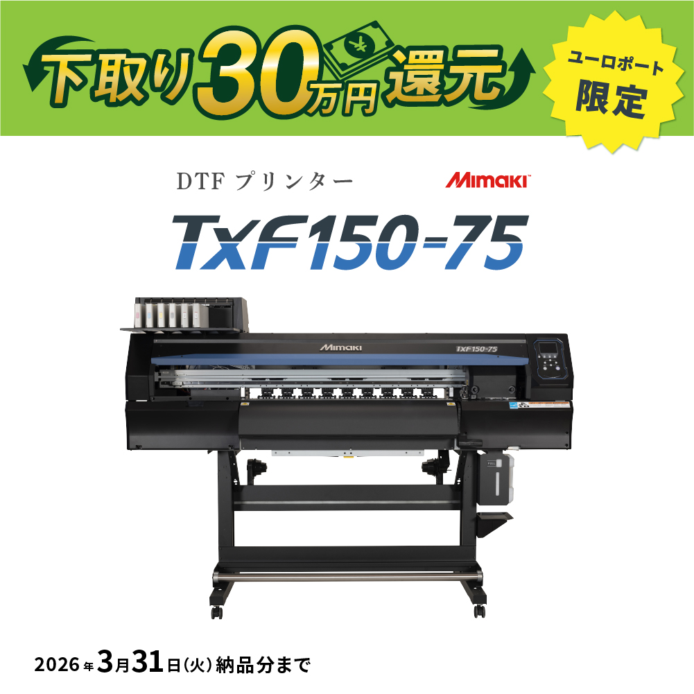 安定稼働で信頼の高い、ミマキのDTFプリンターです。RIPソフトで自動白版生成が可能で、再現性の高い色味もポイント。