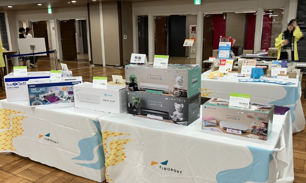 物販コーナーでは、Printing Voyageにご来場いただいた皆さまに楽しんでいただけるよう、カッティングマシンやプレス機、カッティング用シートや+CONNECT(コネクト)商品をご用意しました。